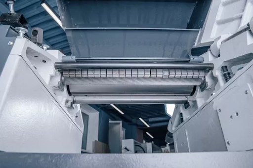 Подача заготовки за допомогою рифленого вала з косими насічками. На виході гладкий сталевий вал. Кігтевий захист запобігає викиду заготовки.