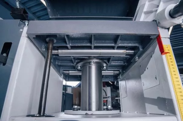 Центральна колона забезпечує високу жорсткість та синхронний підйом/опускання столу, мінімізуючи його перекіс, що критично для отримання паралельних поверхонь.